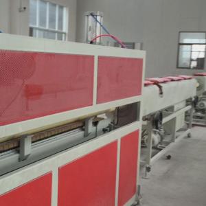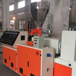 機(jī)器組成:SJSZ雙螺桿擠出機(jī),定型臺,牽引機(jī),料架。