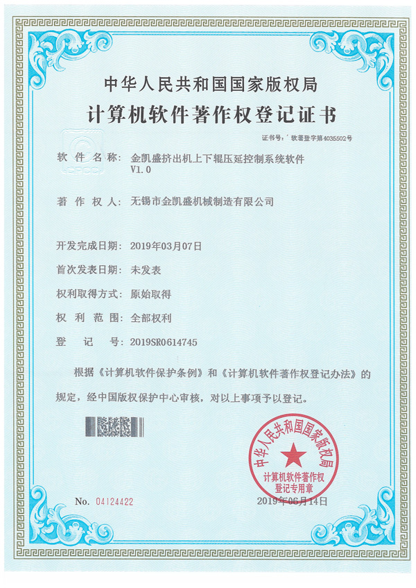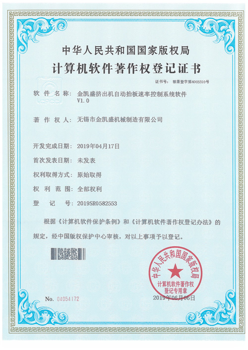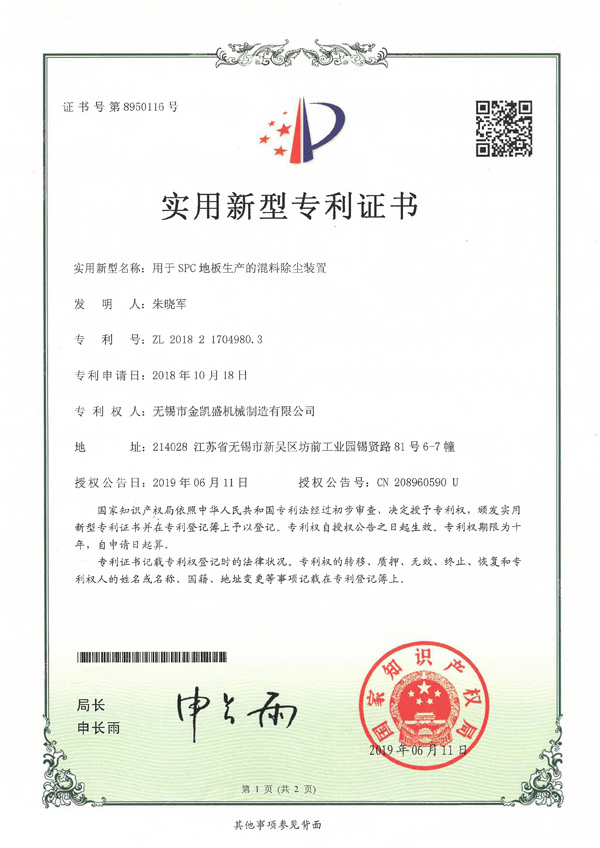 SPC地板生產(chǎn)線專利證書、著作權(quán)